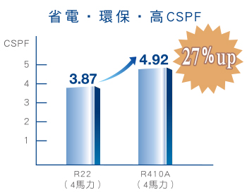 全面使用臭氧層破壞係數為零的R410A環保冷媒,減少對環境的負荷。