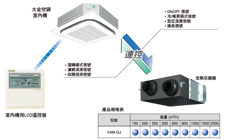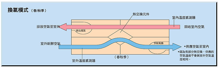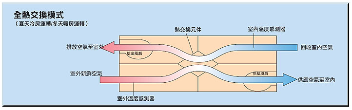 以達到節能的效果。全熱交換器運轉是由遙控器來進行中央控管,透過簡單的設定,可對空調、換氣作控制。採用新式的超薄元件,
