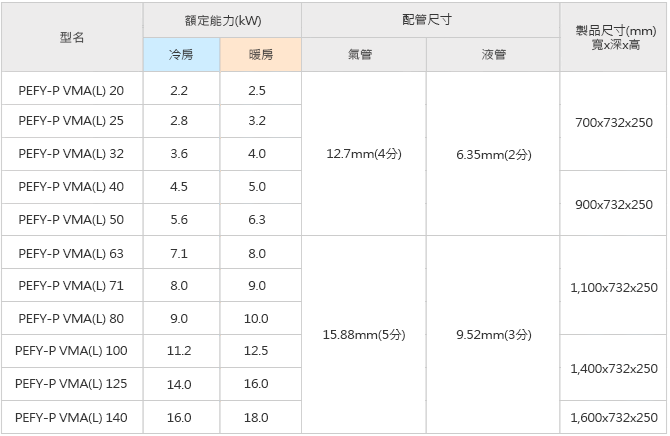 PEFY-P 20~140 VMA(L) 6C/8C限定 (中靜壓 35~150pa)
