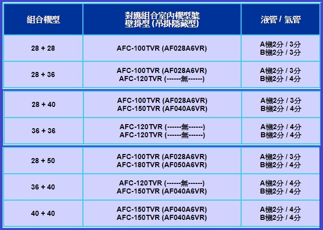 室內機混搭組合表