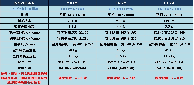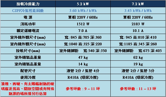● 本產品所列適用坪數僅供參考,當視場地熱負荷需要而更動。